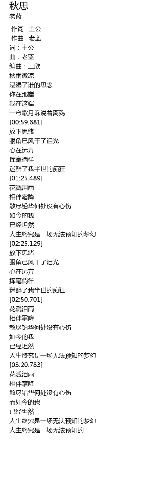 | [00:01.000] | zuò qǔ : lǎo lán |
