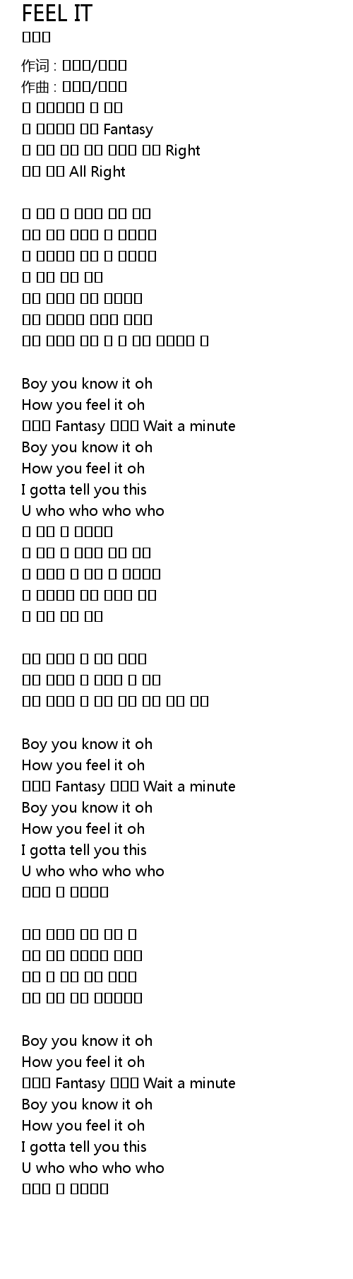 | 숨겨온 Fantasy 잠시만 Wait a minute | |