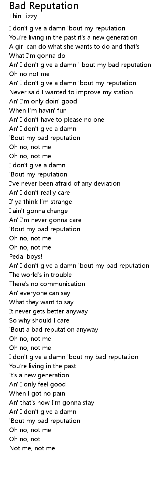 'Bout a bad reputation anyway |