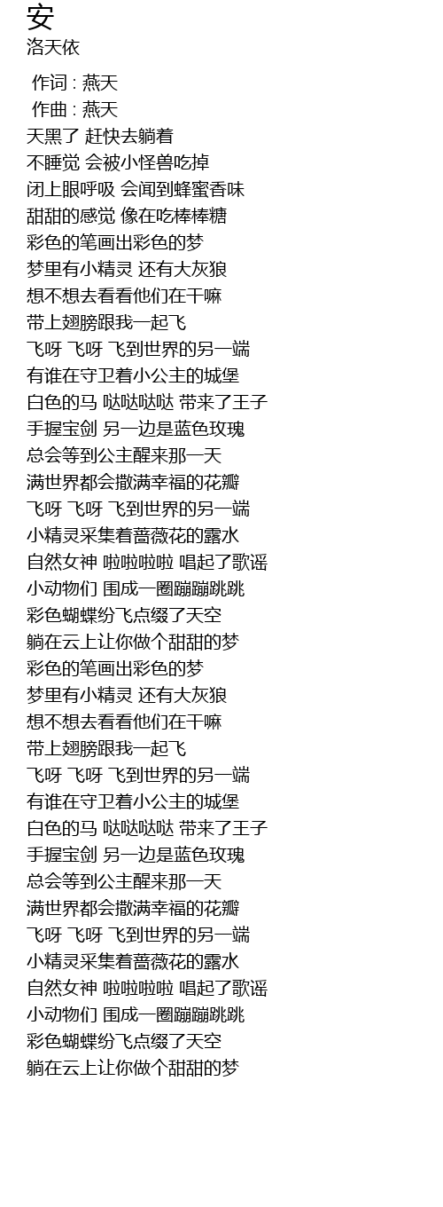 | [04:15.04] | 躺在云上让你做个甜甜的梦 |