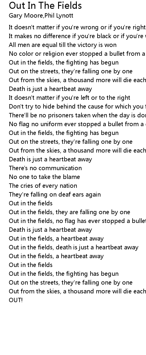 Out in the fields, no flag has ever stopped a bullet from a gun |
