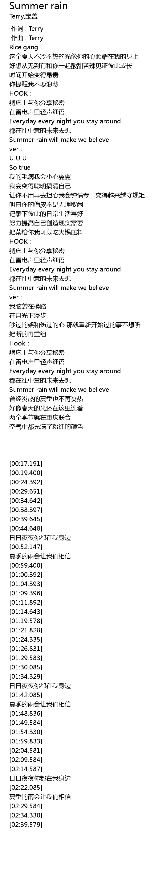 | [01:44.581] | 夏季的雨会让我们相信 |