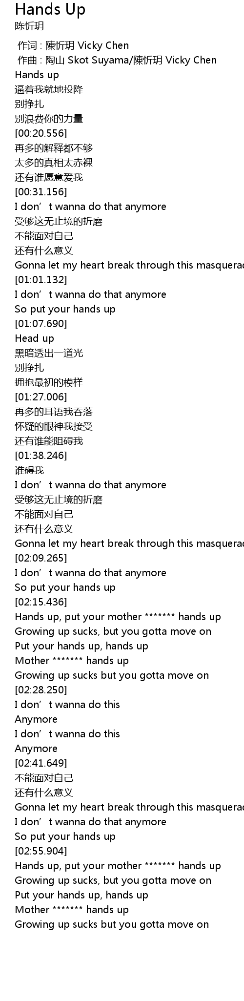 | [00:08.502] | Hands up |