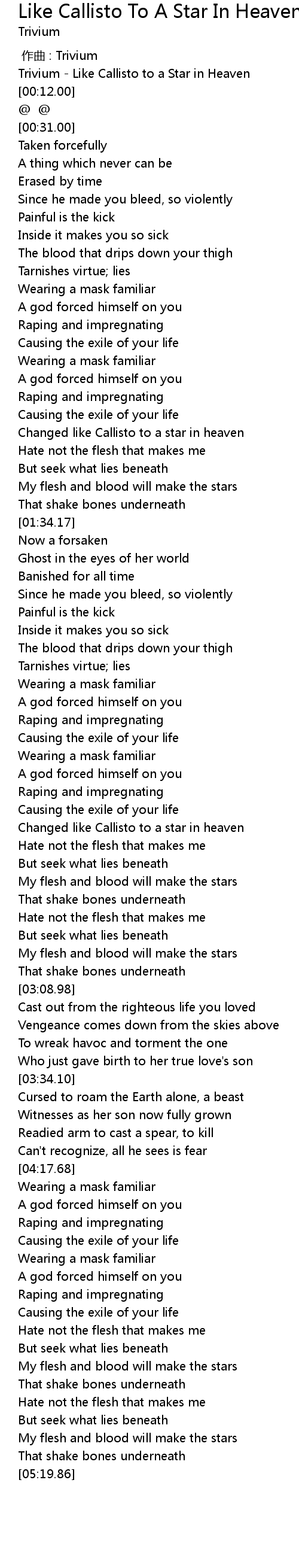 | [00:02.00] | Trivium Like Callisto to a Star in Heaven |