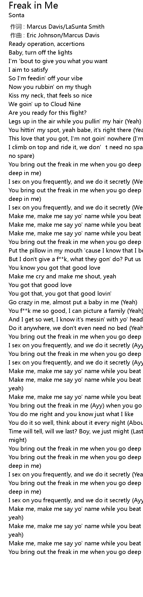| [00:57.125] | You bring out the freak in me when you go deep in me (When you go deep in me) |