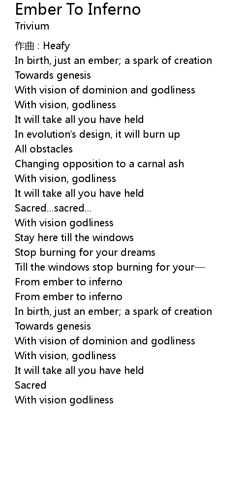 | 歌曲 | Ember To Inferno |
