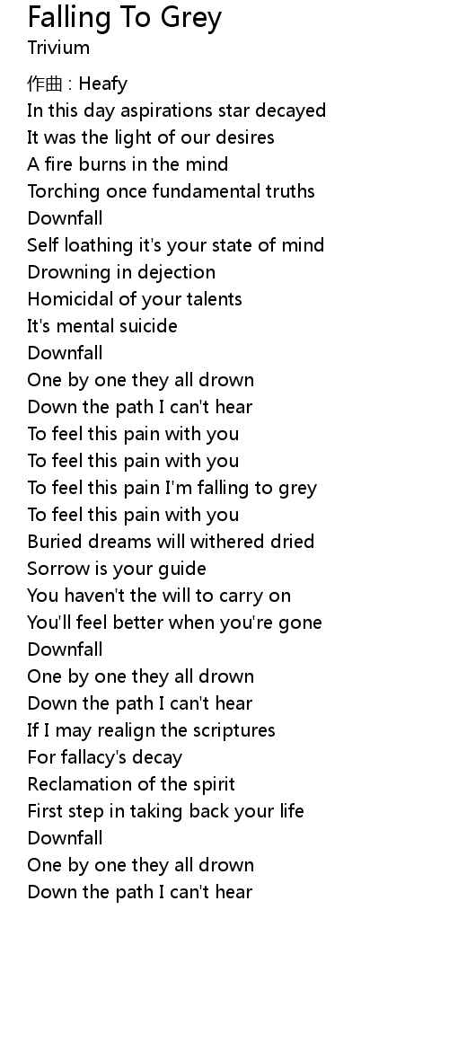 | To feel this pain I' m falling to grey | |