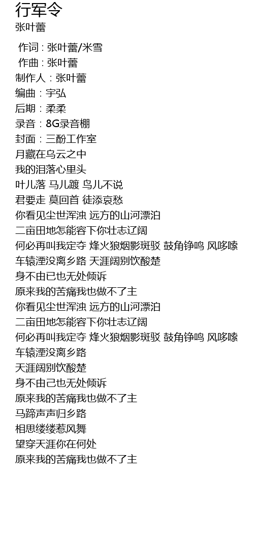 | [00:00.00] | 作词 : 张叶蕾/米雪 |