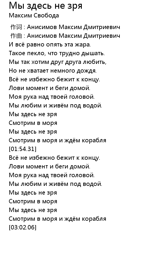 作词 : Анисимов Максим Дмитриевич |