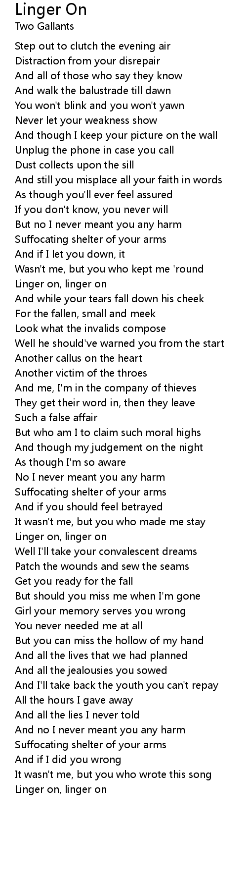 Linger on, linger on |