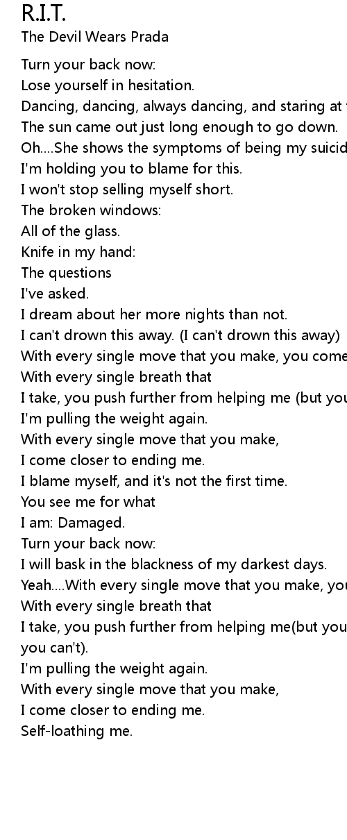 Yeah....With every single move that you make, you come closer to breaking me. |