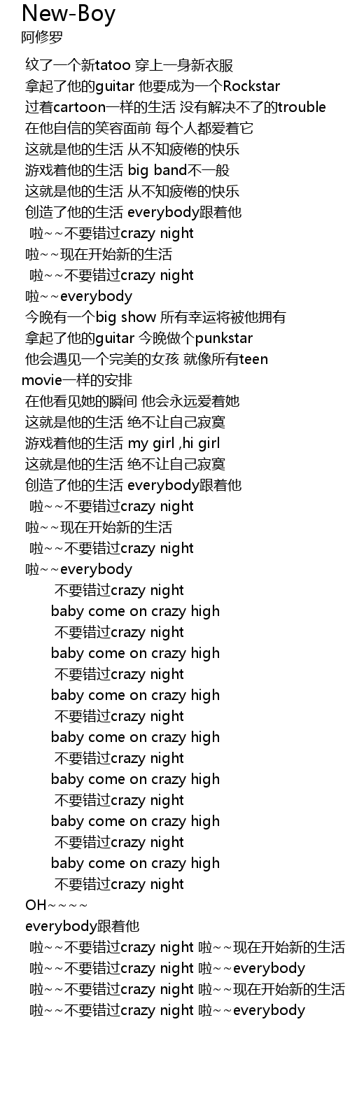 | [03:43.600] | 啦~~不要错过crazy night 啦~~现在开始新的生活 |