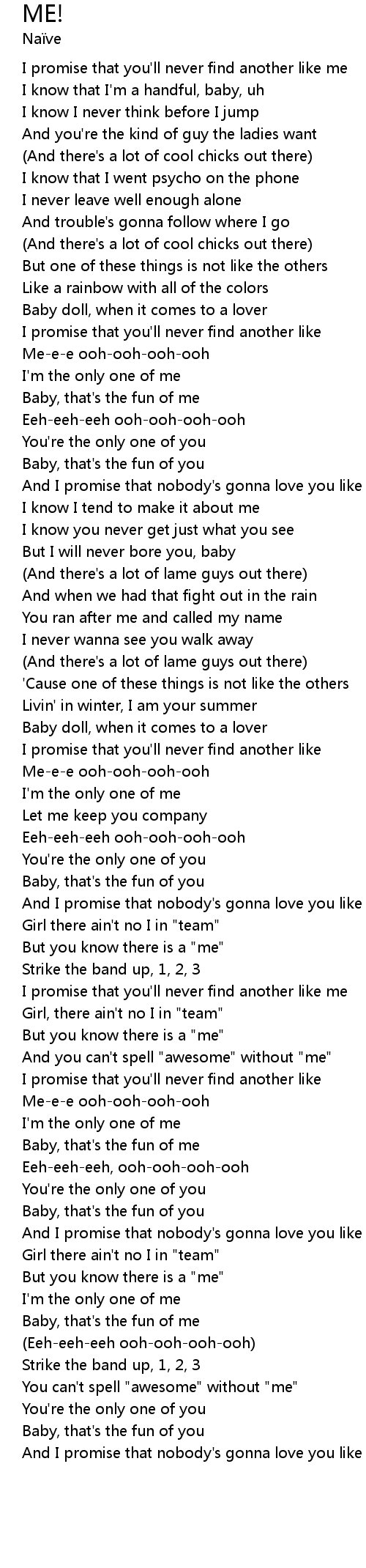 | [02:54.73] | You can't spell "awesome" without "me" |