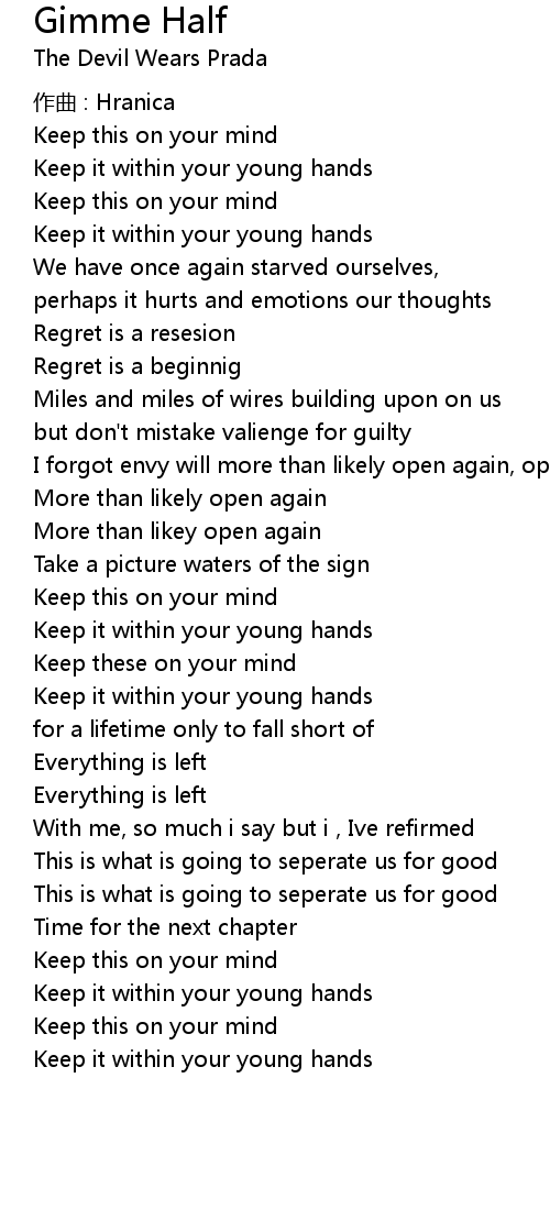 | 歌曲 | Gimme Half |