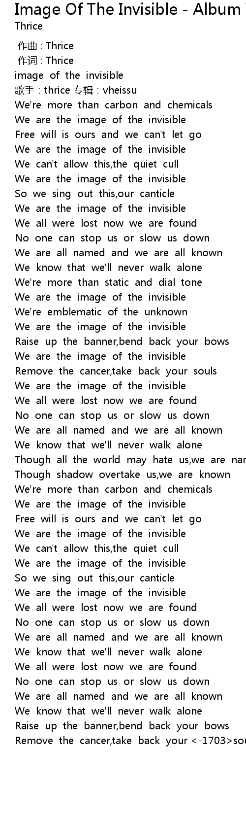 | [00:16.63] | 歌手:thrice 专辑:vheissu |
