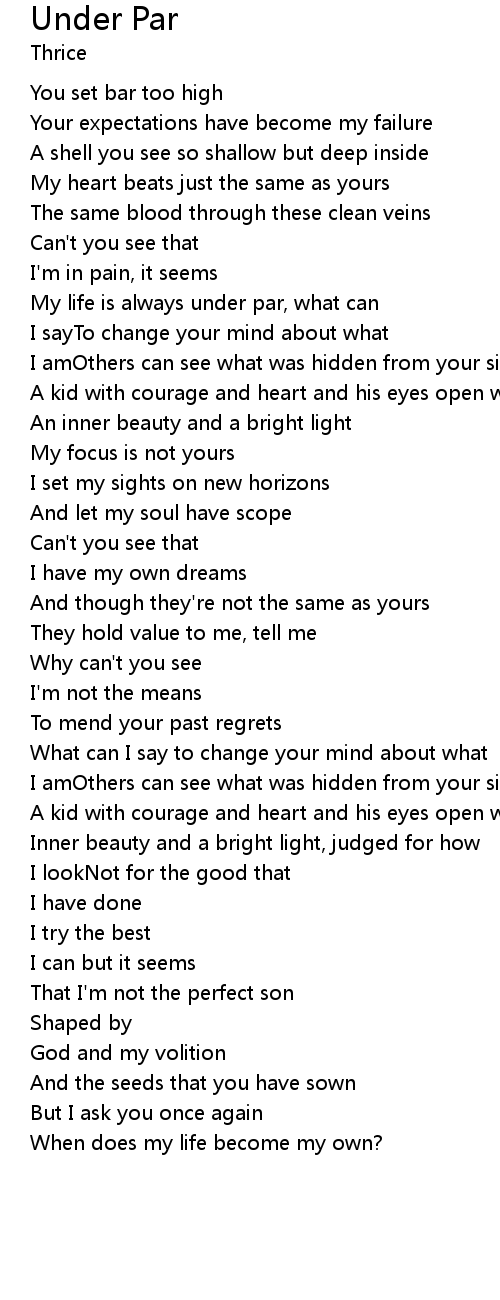 My life is always under par, what can |
