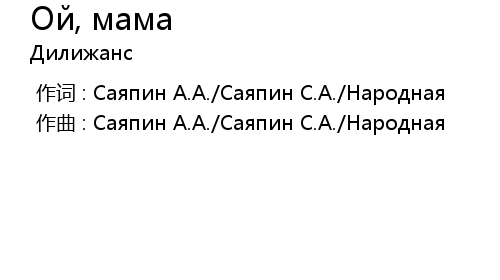 | 歌曲 | Ой, мама |