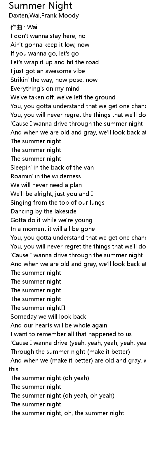 | [02:42.798] | The summer night (oh yeah, oh yeah) |