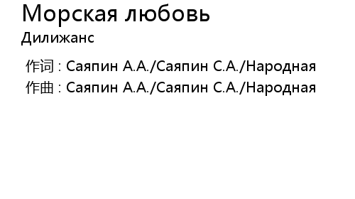 | [00:00.00-1] | 作曲 : Саяпин А.А./Саяпин С.А./Народная |