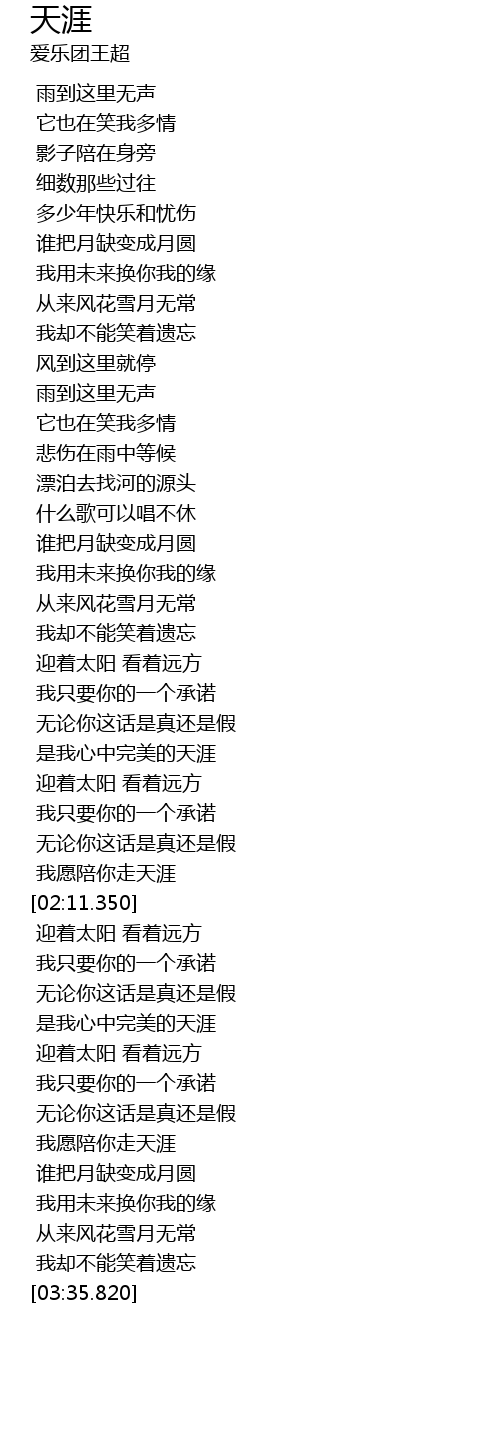 | [02:06.569] | 我愿陪你走天涯 |