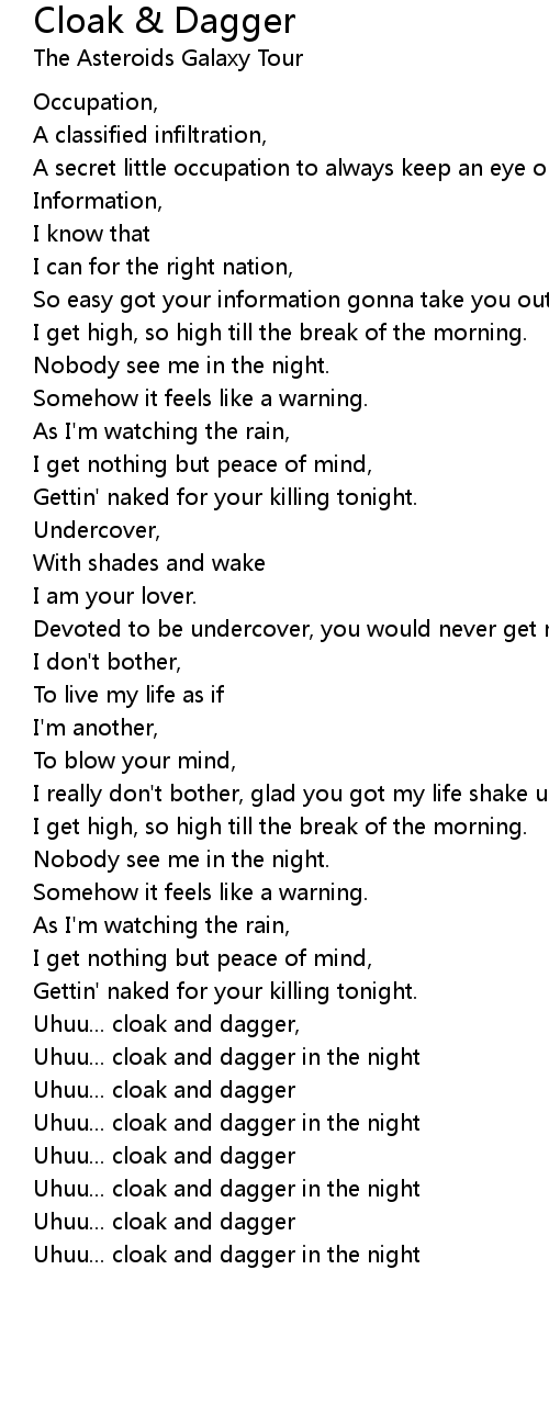 Uhuu... cloak and dagger in the night |