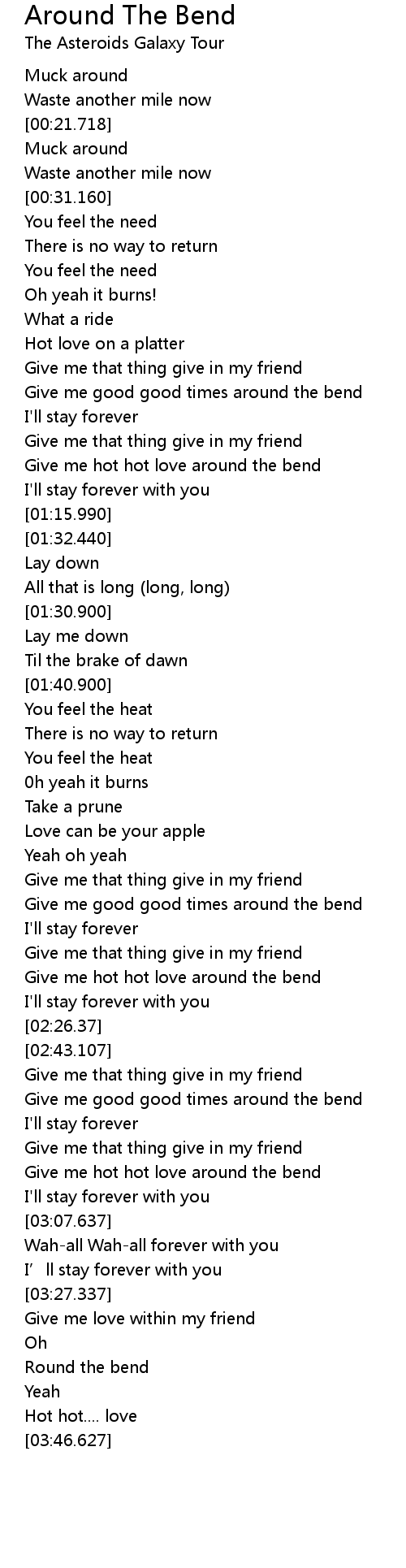 | [03:38.397] | Round the bend |