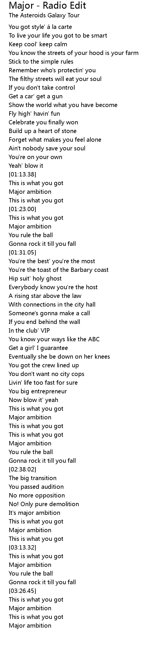 | [01:19.74] | Major ambition |