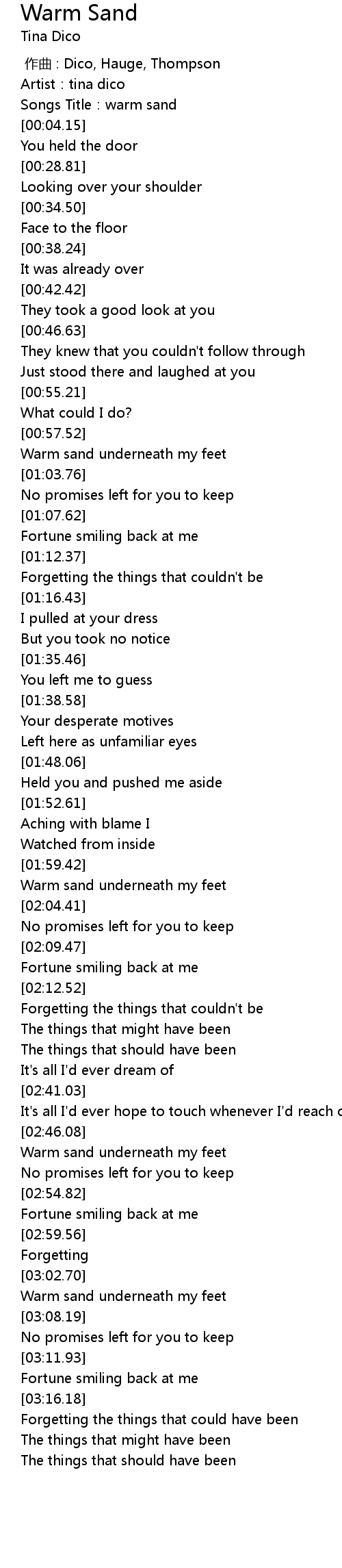 | [00:02.34] | Songs Title: warm sand |