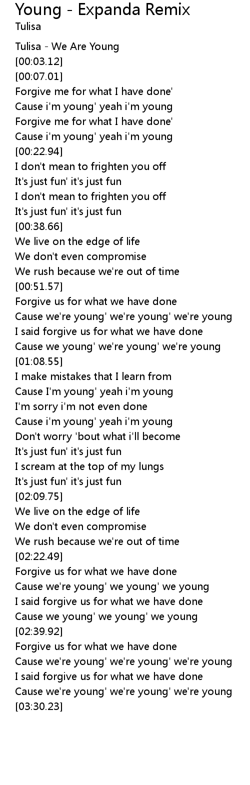 | [00:00.00] | Tulisa - We Are Young |