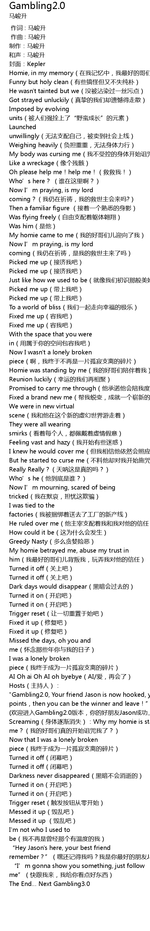 | [00:04.397] | 制作:马峻升 |