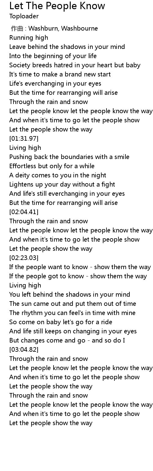 | [03:10.88] | Let the people know let the people know the way |