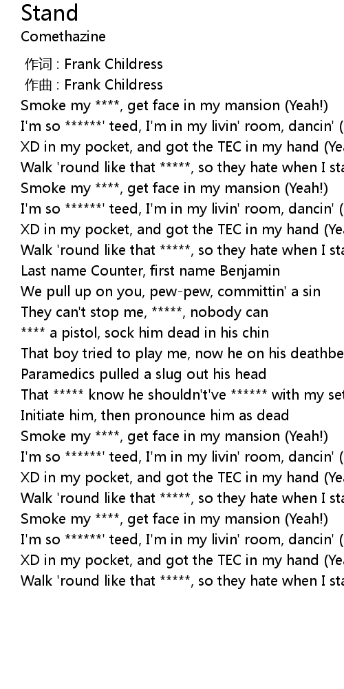 | [00:16.28] | Smoke my ****, get face in my mansion (Yeah!) |