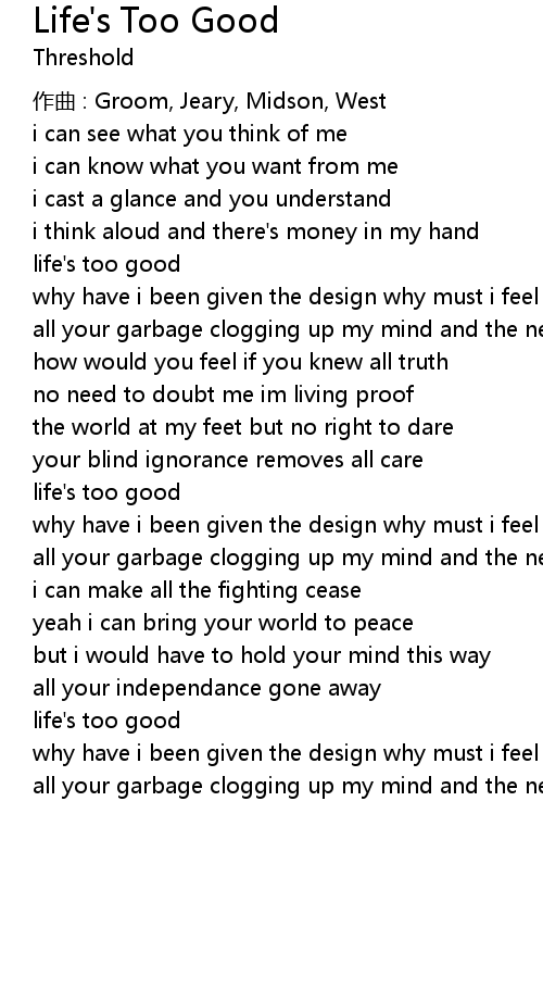 | life' s too good | |