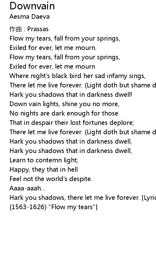 | Hark you shadows, there let me live forever. Lyrics from John Dowland' s 15631626 " Flow my tears" |