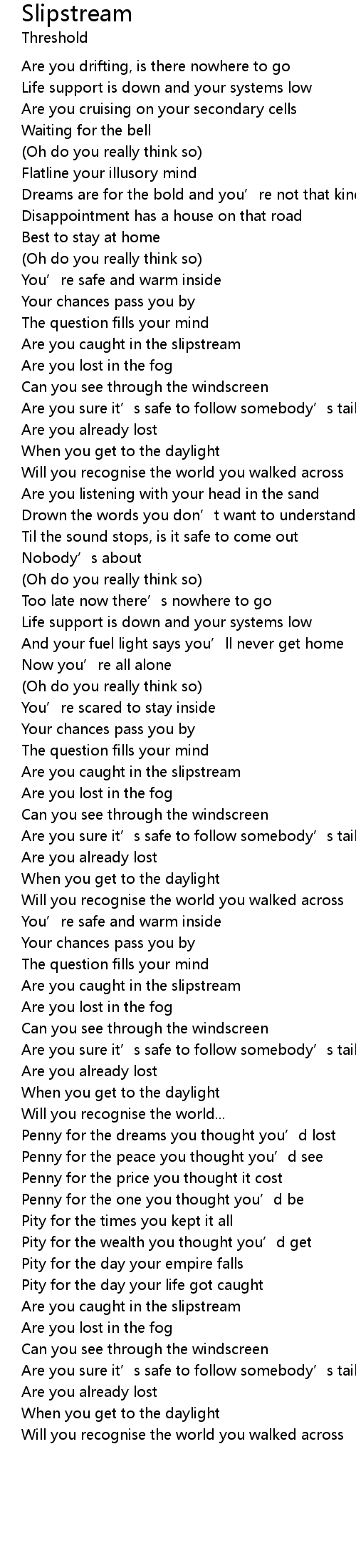 | 歌曲 | Slipstream |