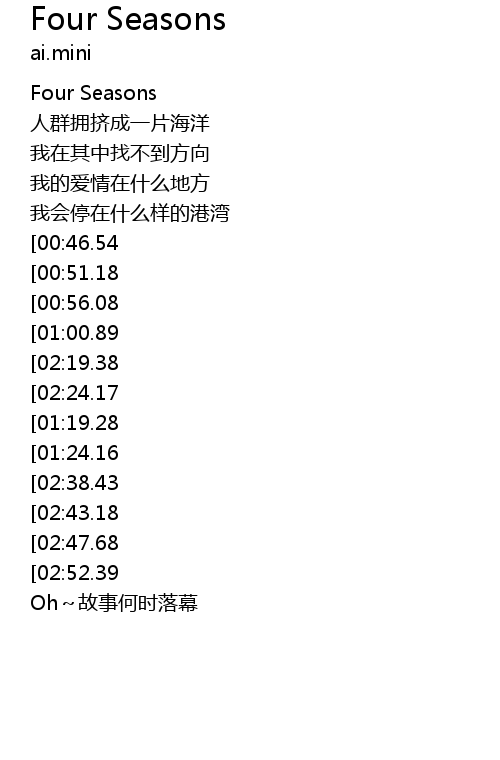 | [01:56.04][00:46.54] | 春天夏天秋天又冬天 |