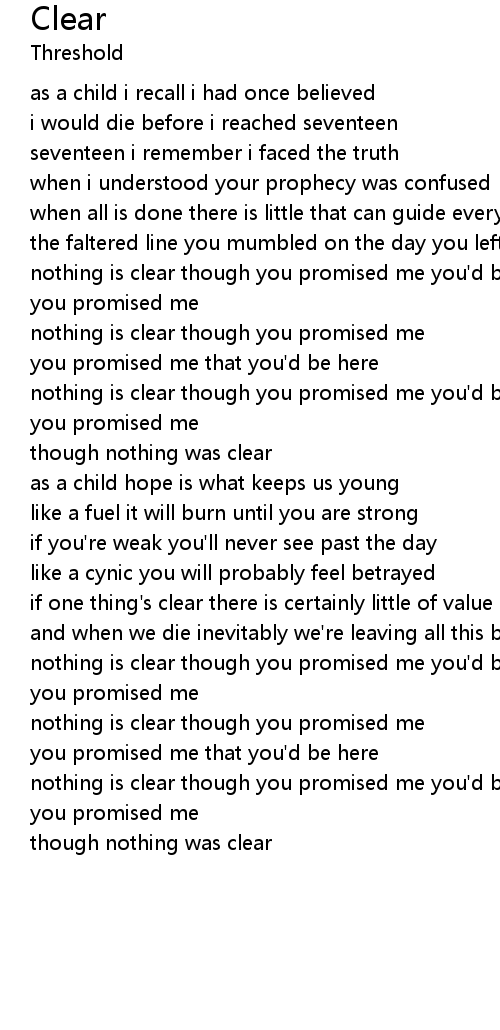 nothing is clear though you promised me you'd be here