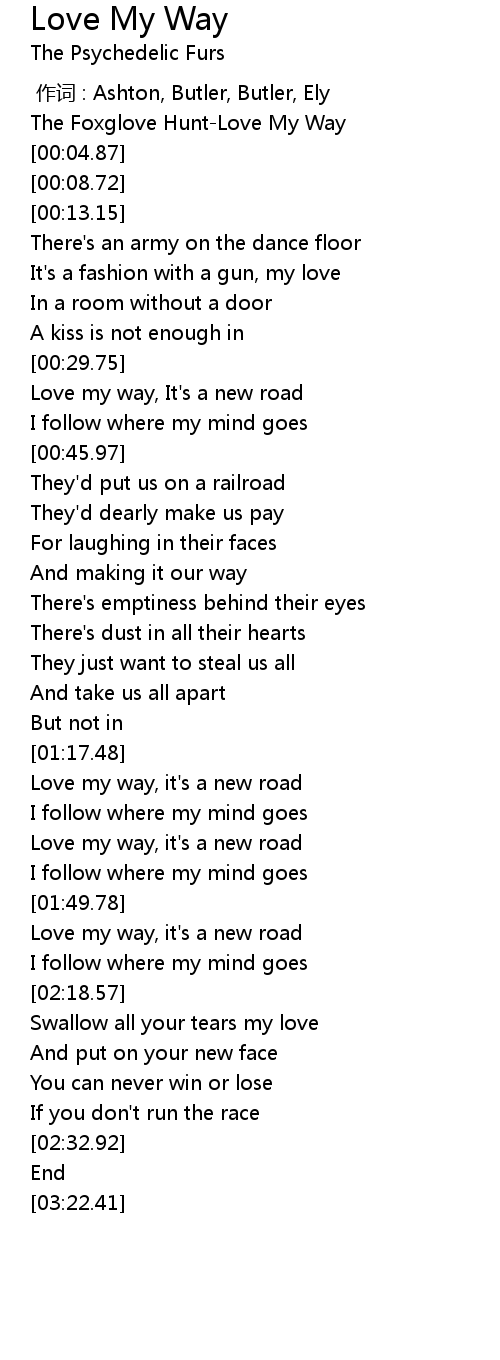 | [01:34.00] | Love my way, it's a new road |