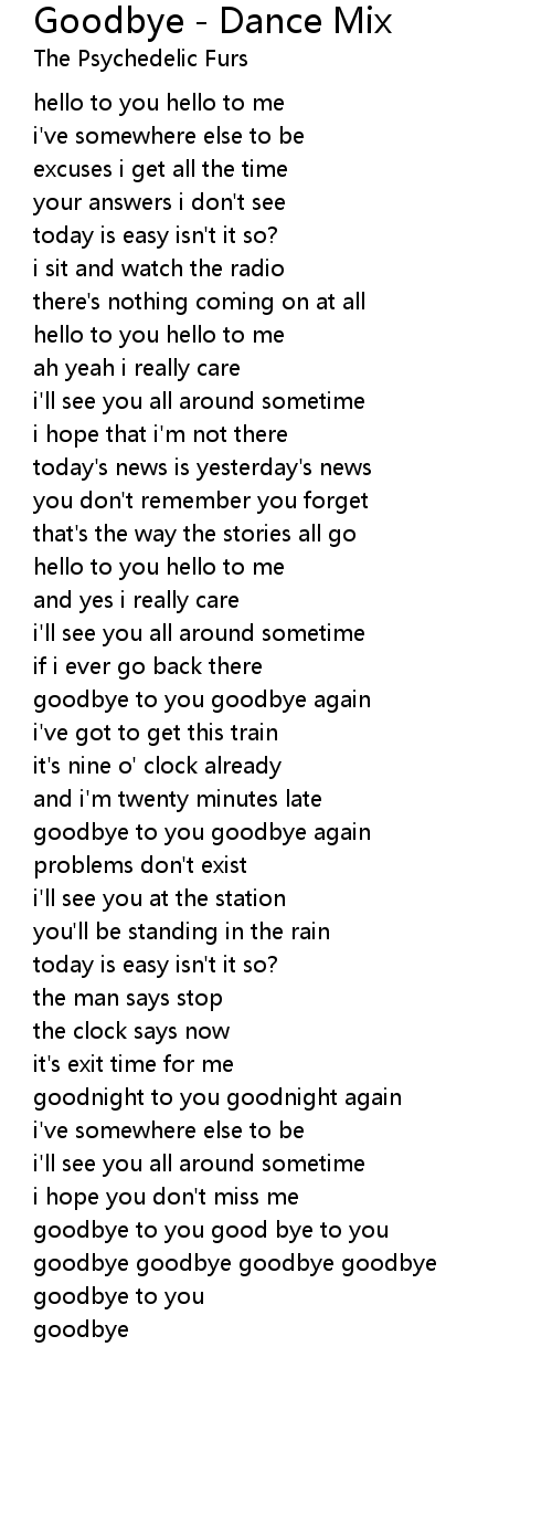 goodbye to you good bye to you |