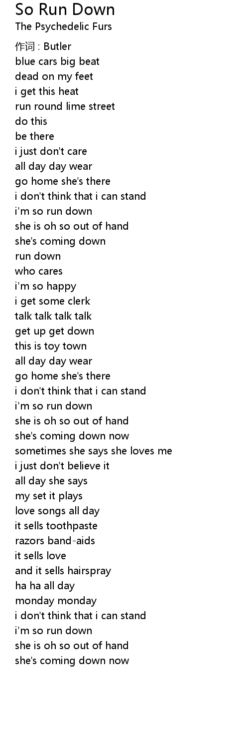 | 歌曲 | So Run Down |