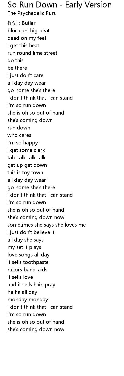 | 歌曲 | So Run Down - Early Version |