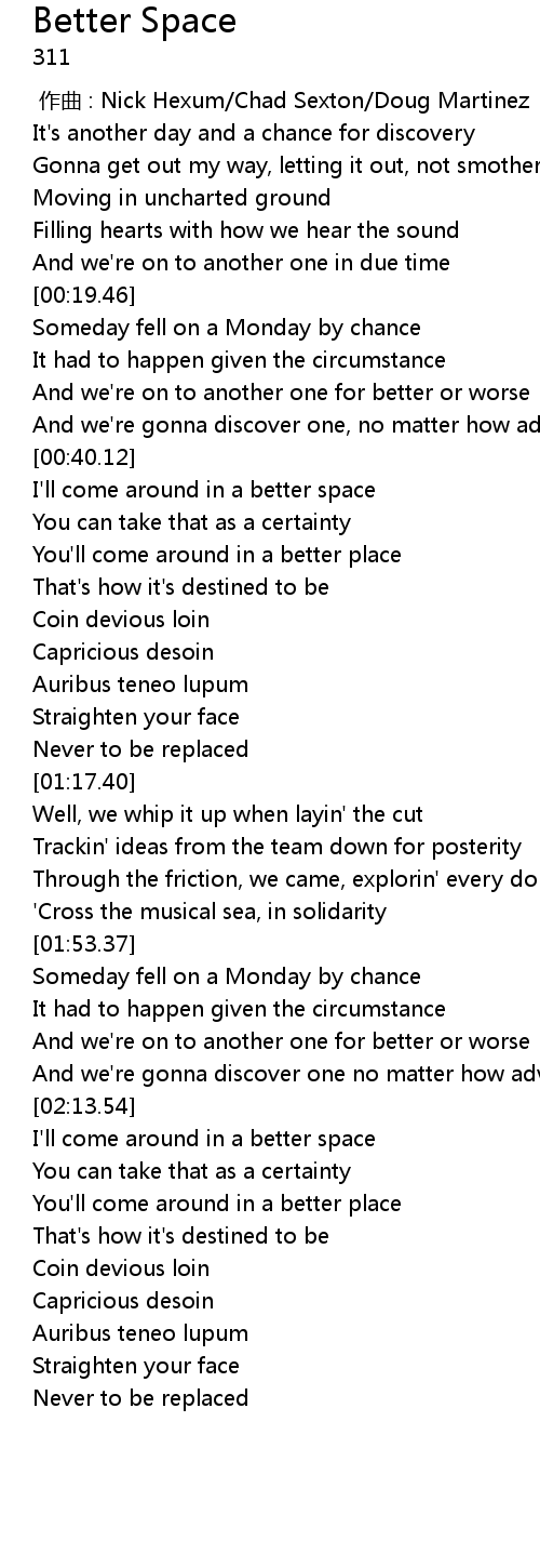 | [00:40.52] | I'll come around in a better space |