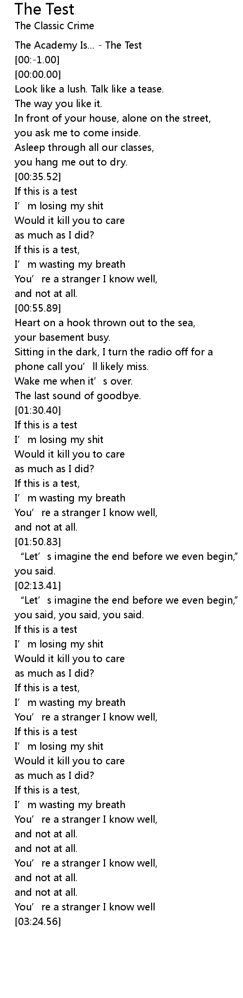 | [00:-2.00] | The Academy Is... The Test |