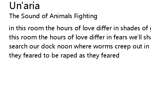 | in this room the hours of love differ in shades of gray still make shadows in this room the hours of love differ in fears we'll shake lovers that on this day search our dock noon where worms creep out in sunlight to be raped by birds as they feared to be raped as they feared |