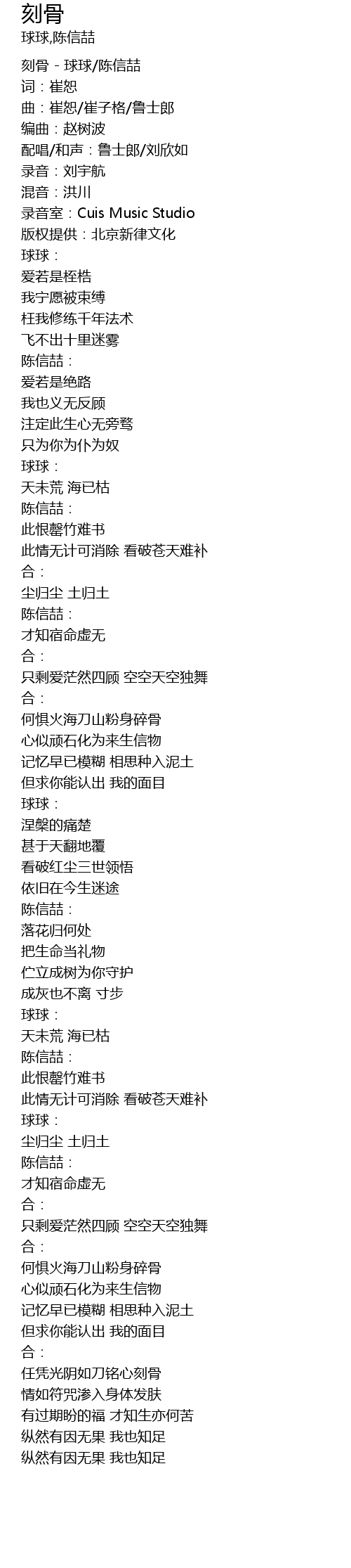 | [00:02.05] | 刻骨 - 球球/陈信喆 |