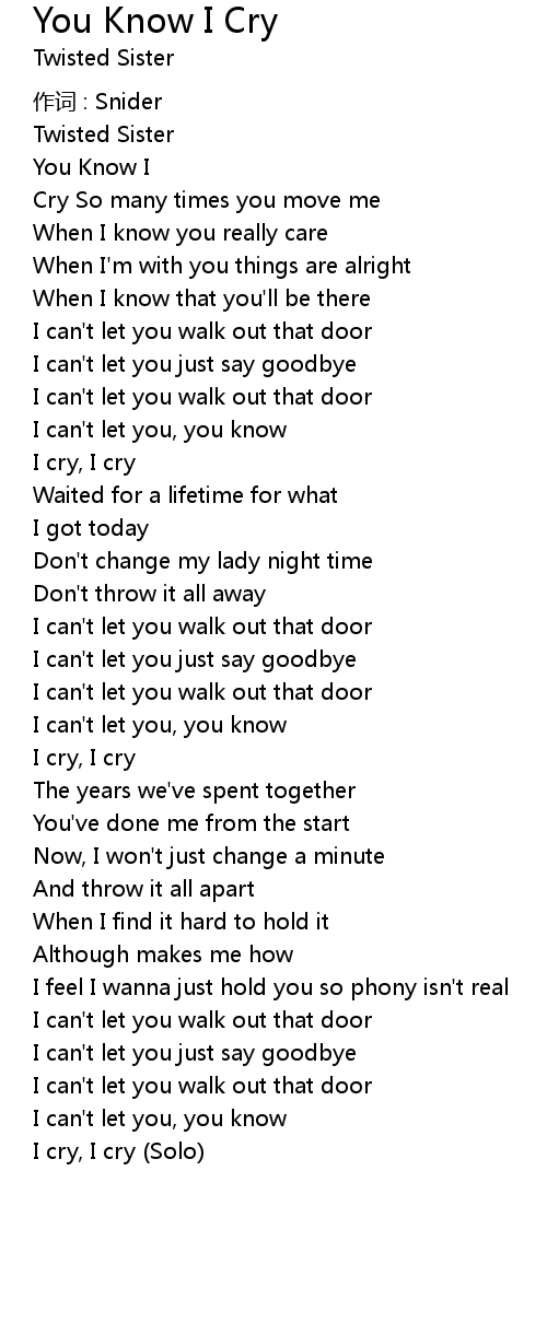 | 歌曲 | You Know I Cry |