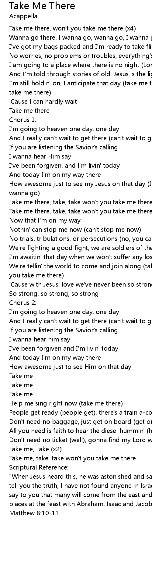 We're tellin' the world to come and join along (take me there, take, take won't you take me there) |