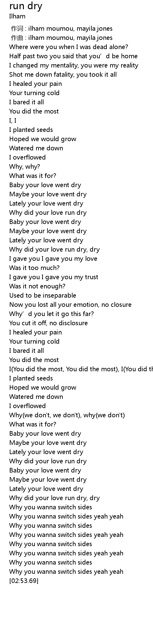 | [02:33.75] | Why you wanna switch sides yeah yeah |