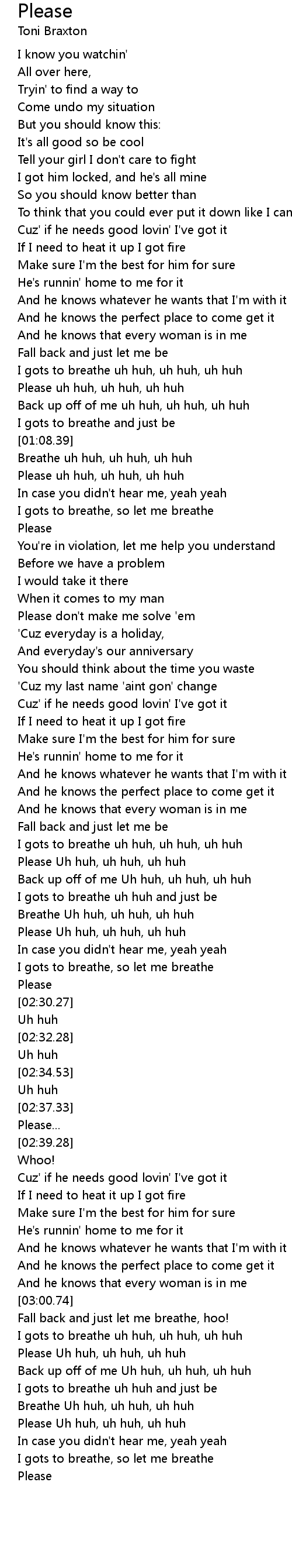Please Uh huh, uh huh, uh huh |
