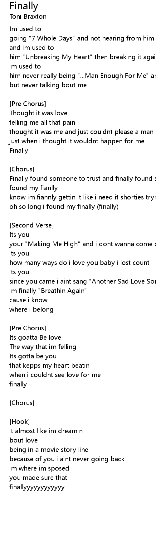 Finally found someone to trust and finally found someone who listens to go out i found my fianlly